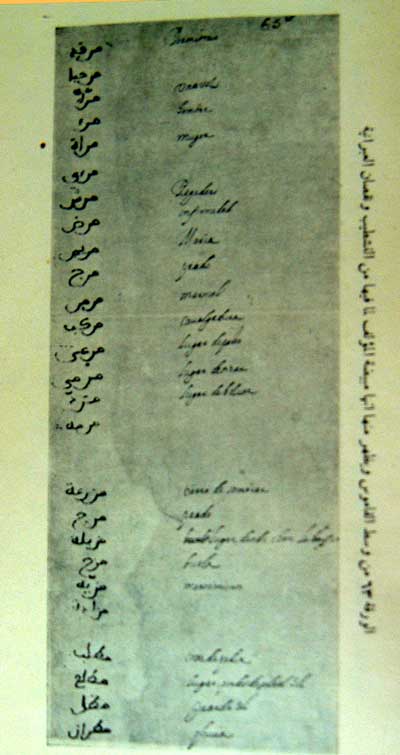 Photo of manuscript of Leo's Arab-Hebrew-Latin vocabulary